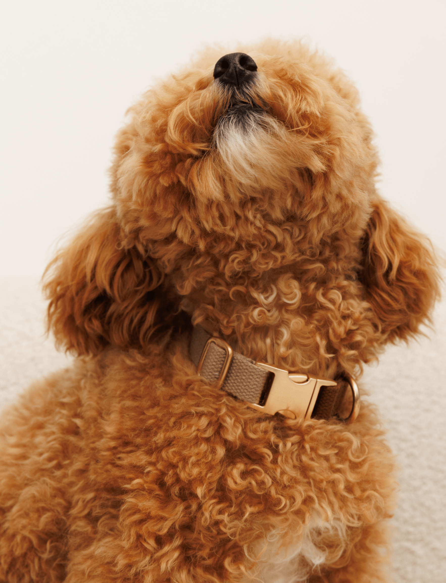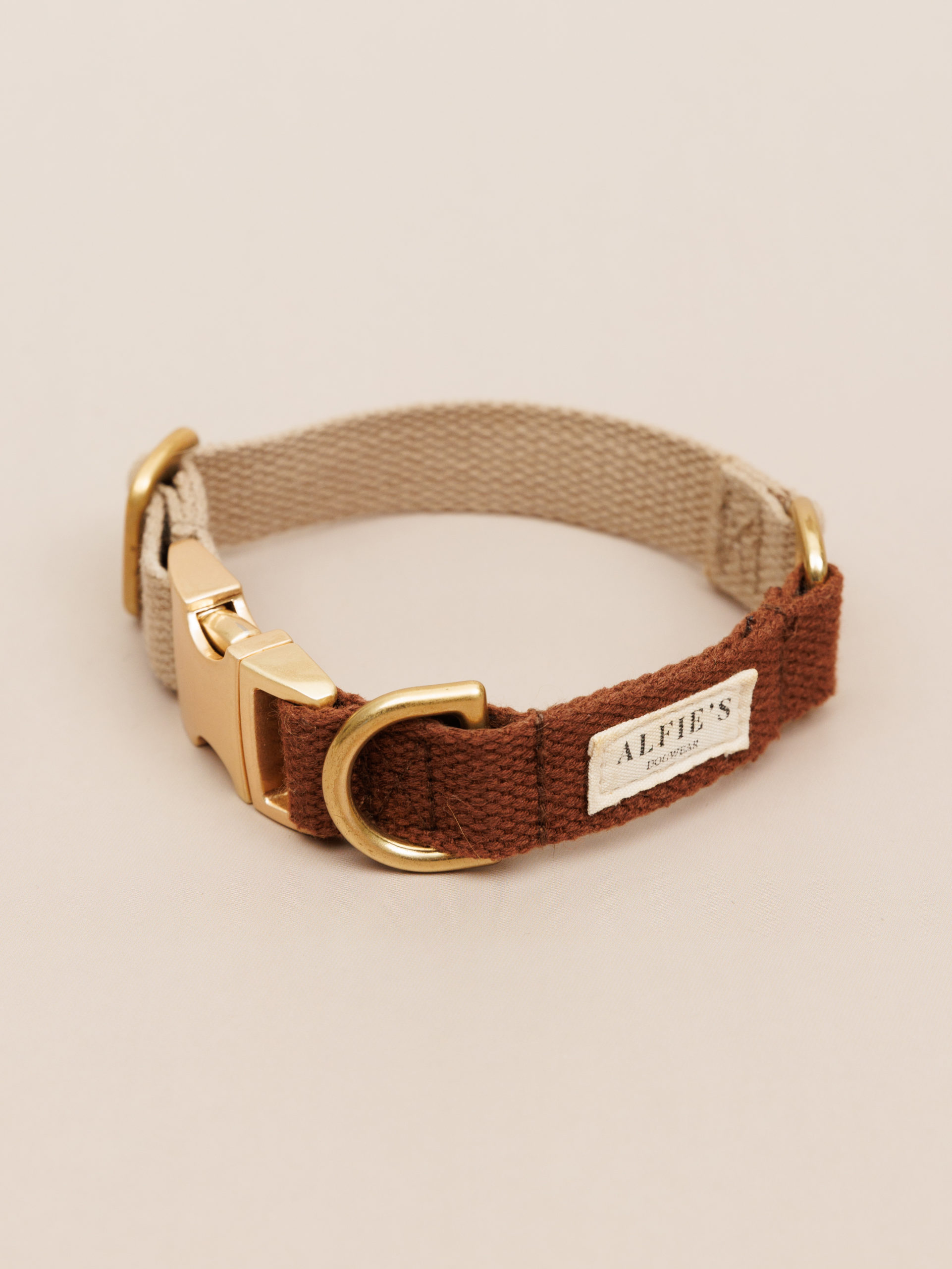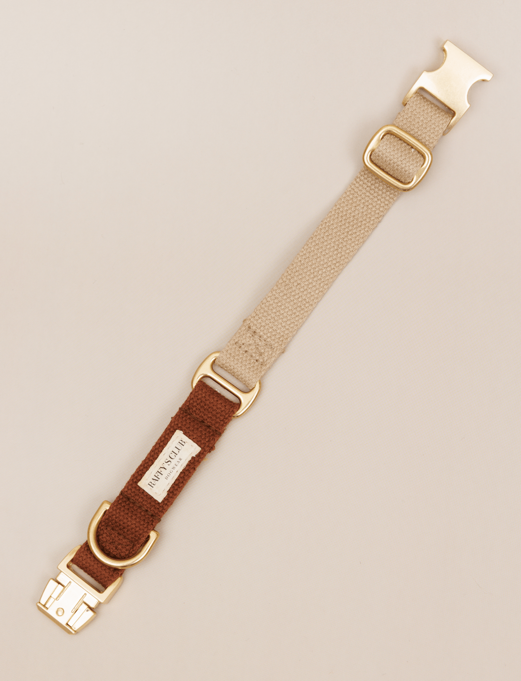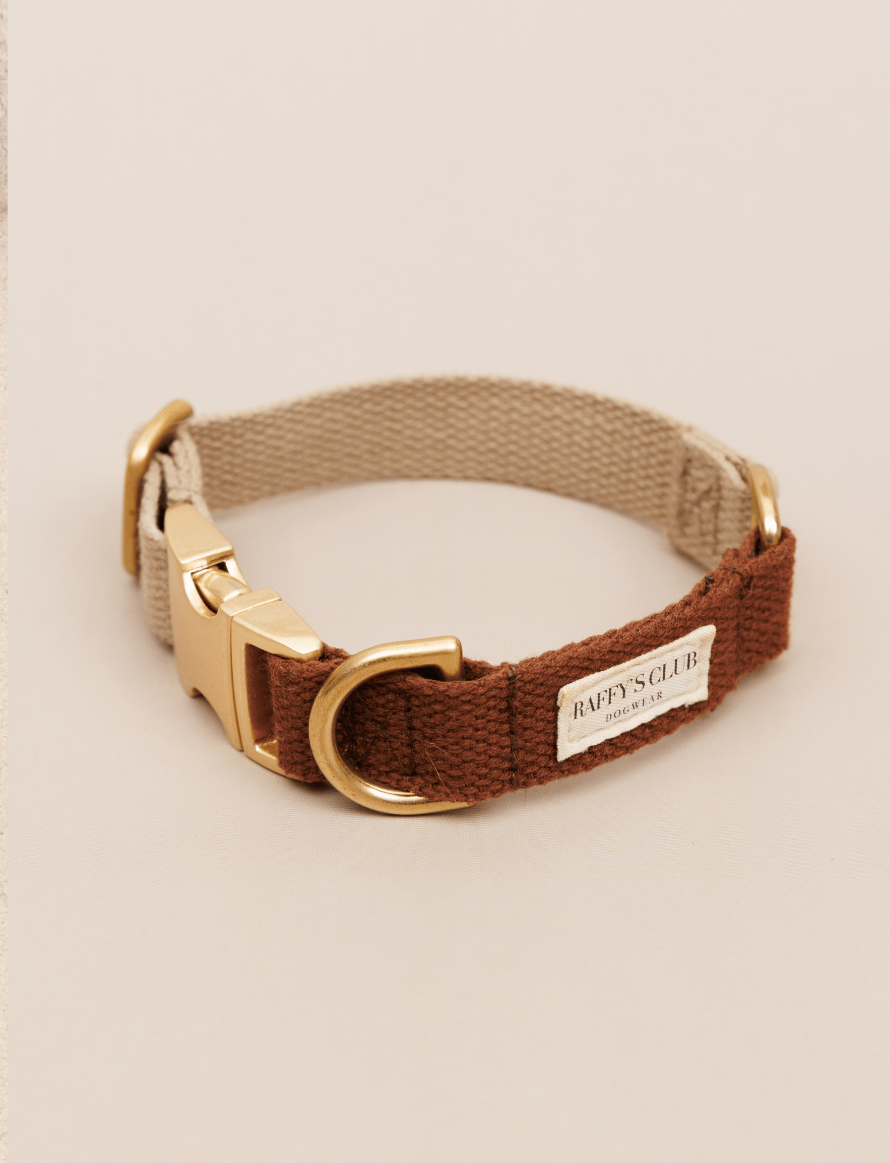 Ошейник для собак Classic Macchiato с точной регулировкой в одной точке сидит комфортно и не создаёт лишней нагрузки на питомца. Мягкая стропа из 100% хлопка позволяет коже дышать и не перегреваться. Латунная фурнитура и металлическая застёжка делают ошейник надёжным и долговечным, при этом он остаётся лёгким за счёт минимального количества металла — только застёжка и D‑ринг. Ручная работа. Легко сочетать с нашей шлейкой и поводком.