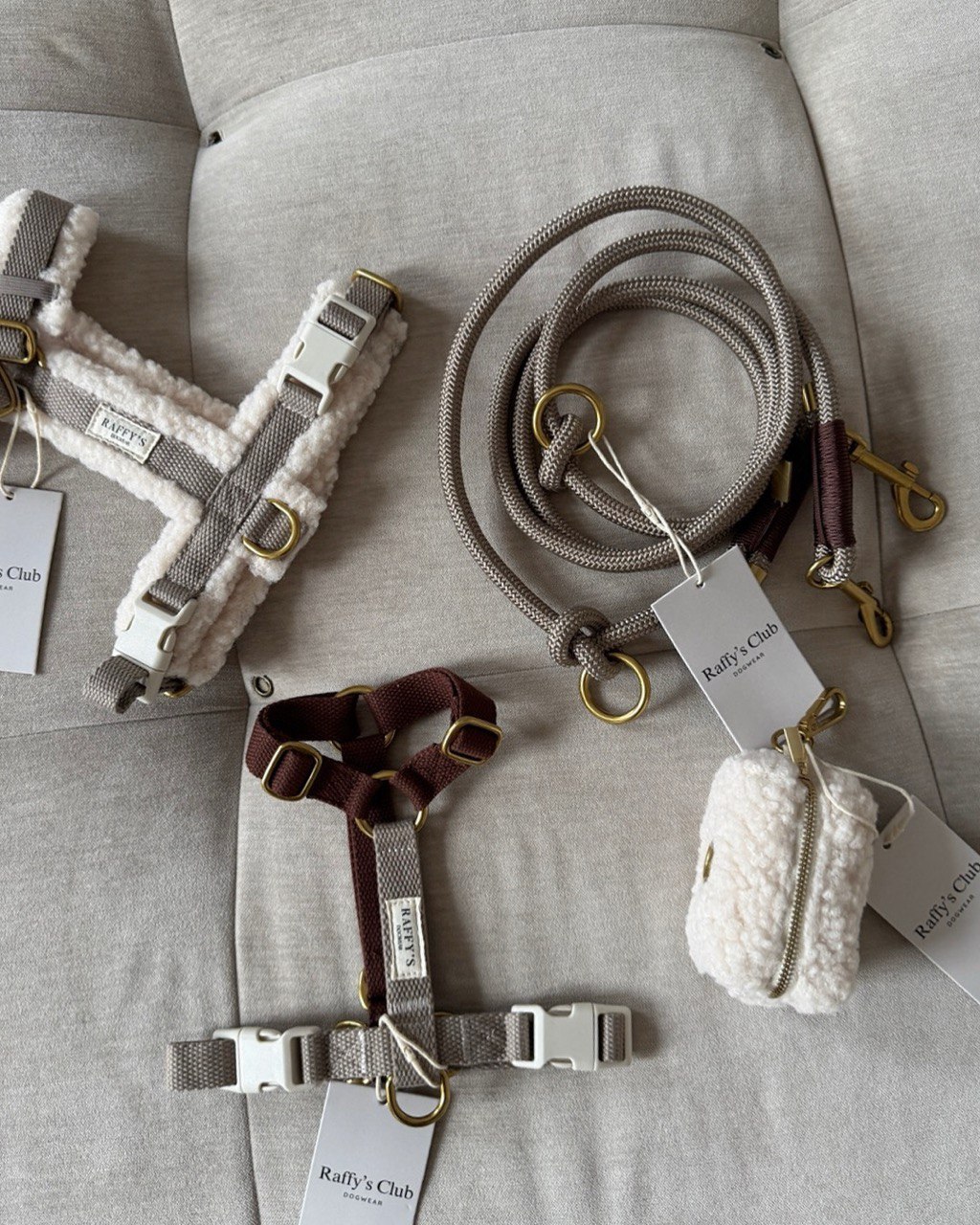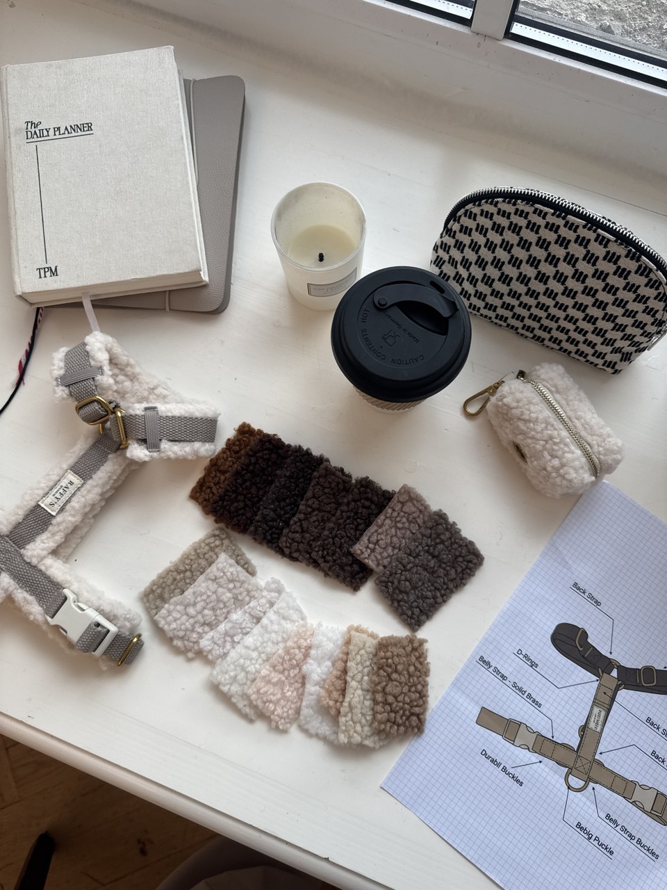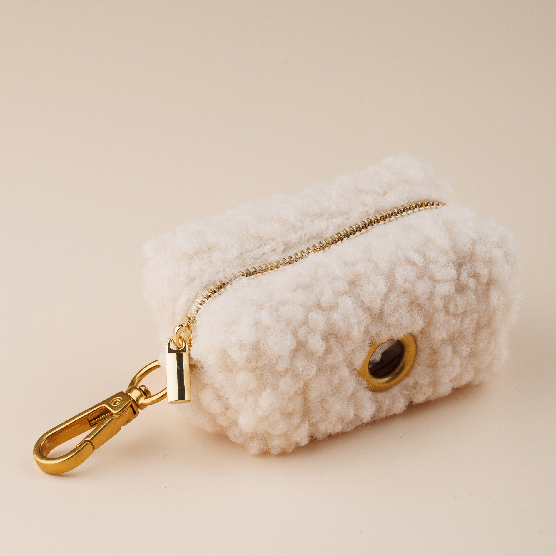 Давайте честно — подбирать за хвостиком не самый гламурный момент. Зато мешочек для пакетиков может быть стильным. Этот мини‑паууч из того же уютного материала тедди, что и наша шлейка, аккуратно держит стандартный рулон пакетиков и оставляет немного места для «на всякий случай» — например, для лакомства или ключа.